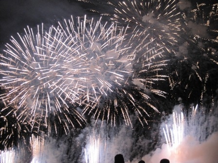 近くで見ていたのでまるで花火に飲み込まれそうな感覚を受けました。。。 音楽が掛かったり、スポットライトが空に当たったりと工夫満載の花火大会でした。