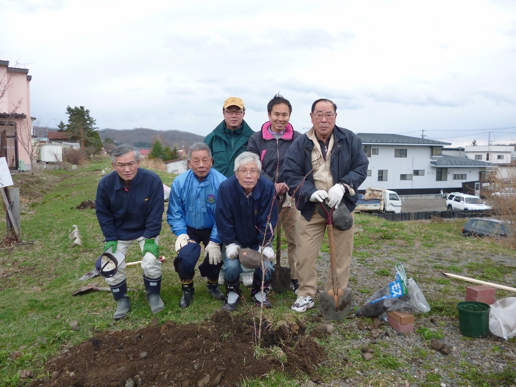 今回は本別町内の有志-6人が集まり、8本のさくらともみじの木を植えました。