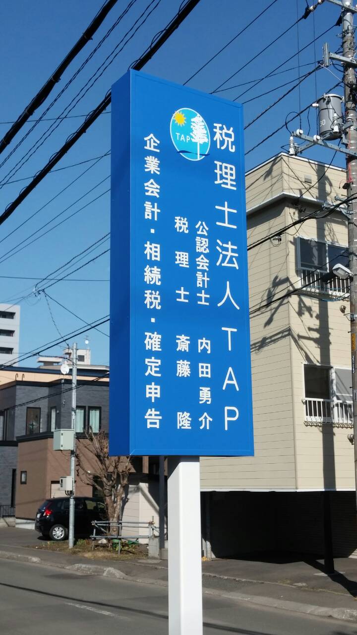 そして札幌の事務所にはポール型の看板を付けてみました。