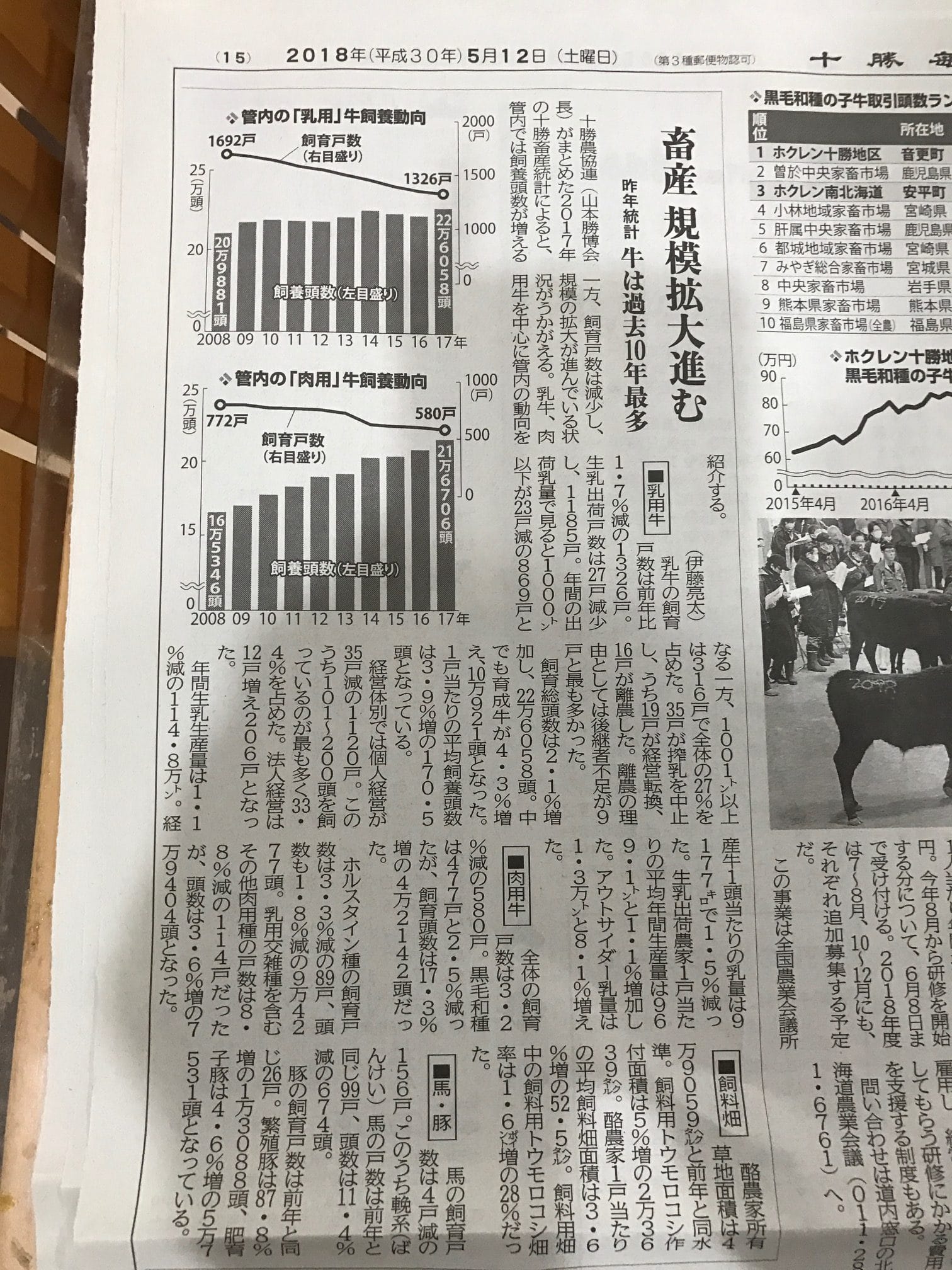 ホクレン十勝地区市場も黒毛子牛の取引数が全国一となったようです。