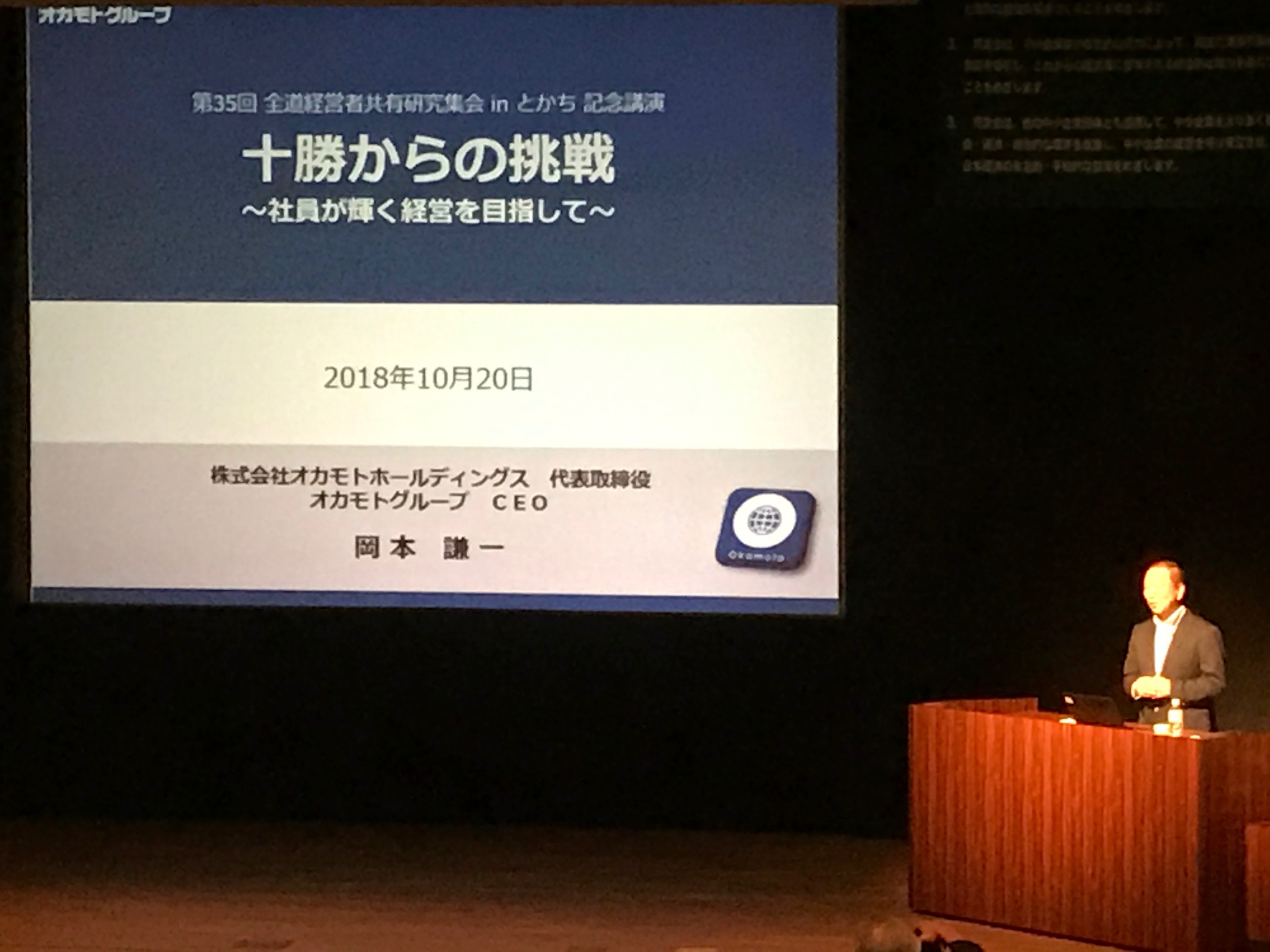 本日、そんな北海道十勝で最も売上が高いオカモトホールディングスの岡本謙一社長の講演をお聞きました。