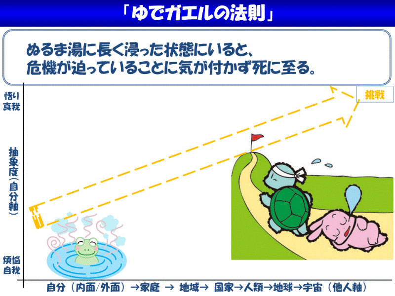 ・リーダーシップを発揮しないと組織にゆでガエル減少が発生する