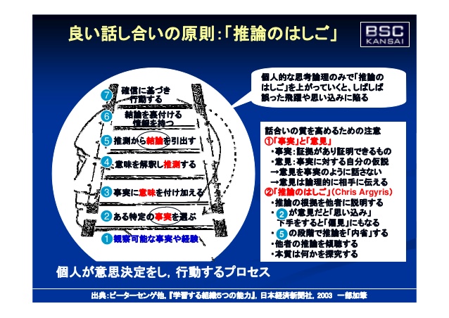 次に、共創的なコミュニケーションを進めるために「推論のはしご」に留意する。