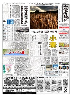 例えば、上の 十勝毎日新聞の記事は一面に黄金色で「小麦」が育って収穫がはじまる、ということを載せております。
