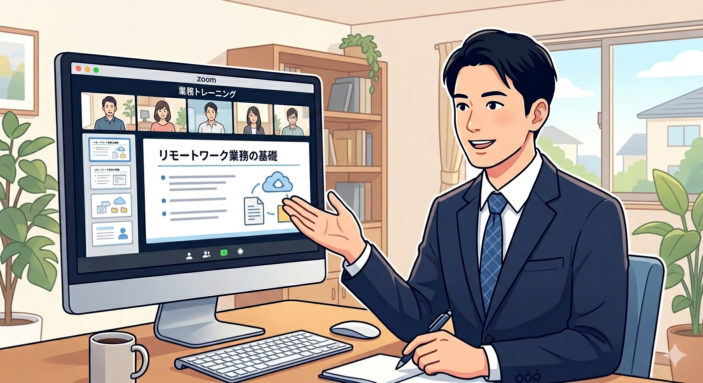 Zoomを使いながら当社側、マニュアルも使いつつリモートワーク側の両方の画面を使いながらそれぞれのソフトの使い方をお伝えしていきます。