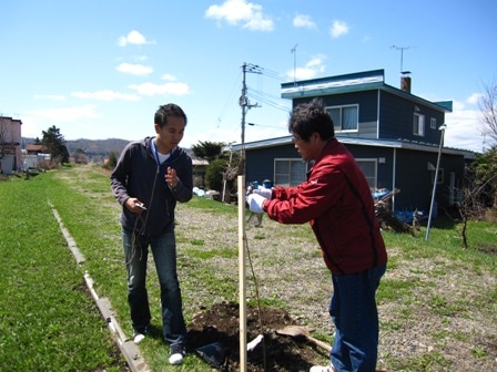 今回は本別町内の有志-7人が集まり、7本のさくらともみじの木を植えました。