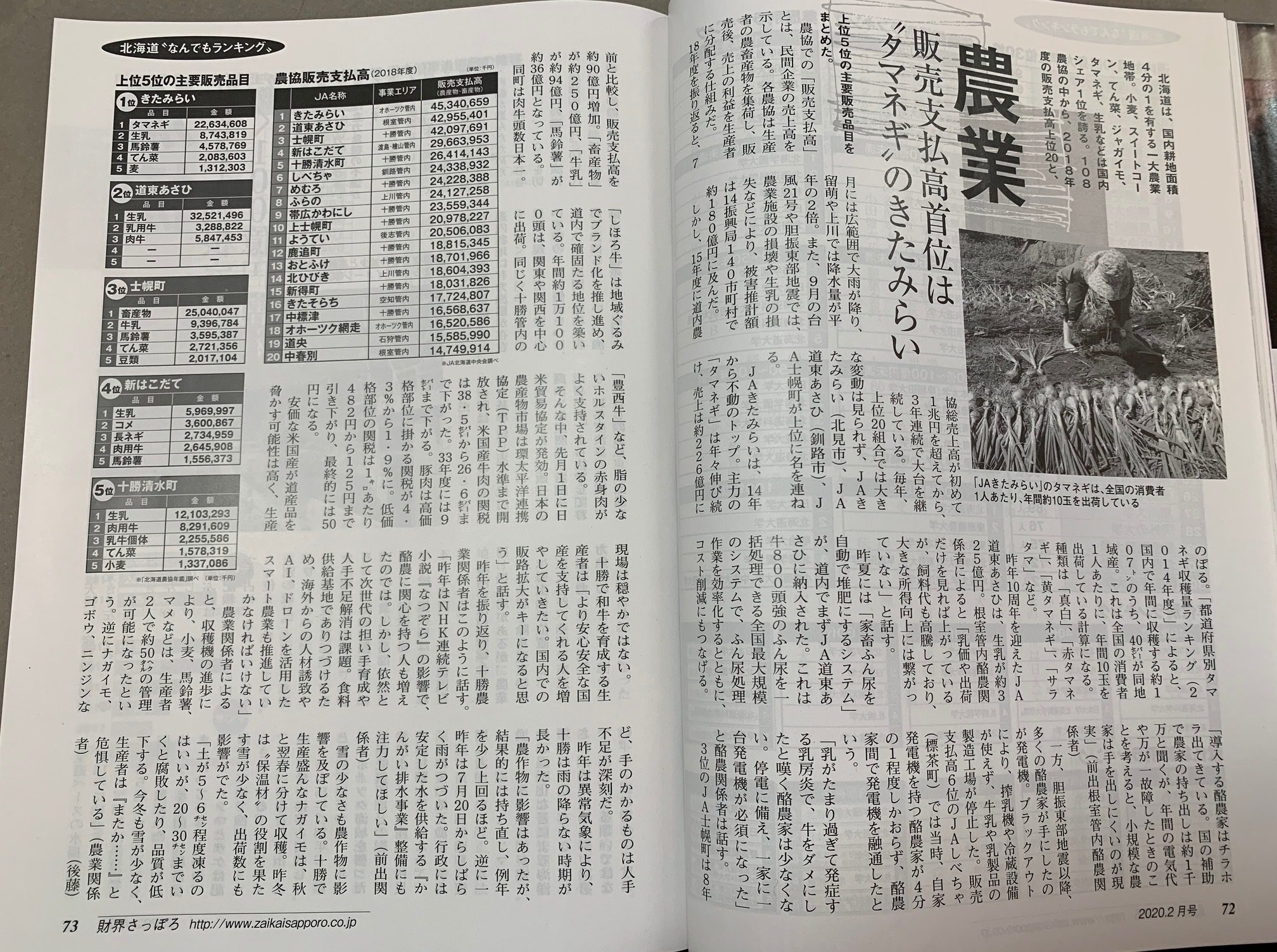 前回に引き続き『財界さっぽろ』より、農協ランキングを読んでみました。