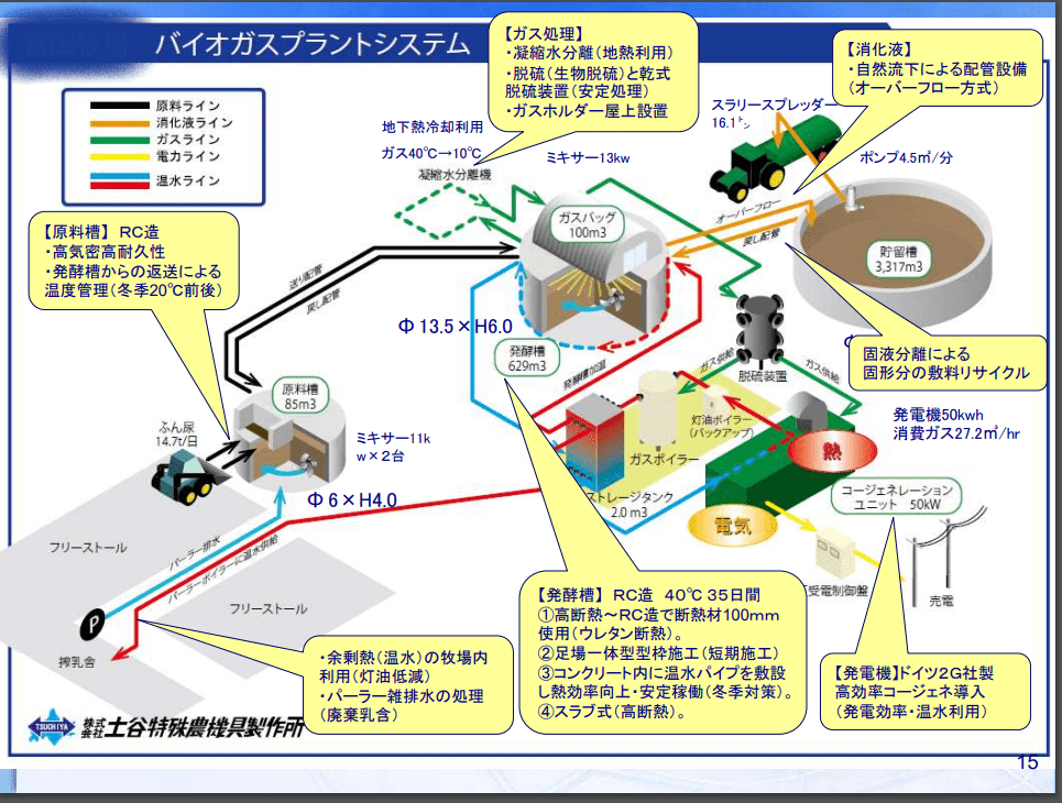 このプラントにより、処理作業が大幅軽減され、悪臭が無くなり、電気温水を生みます。